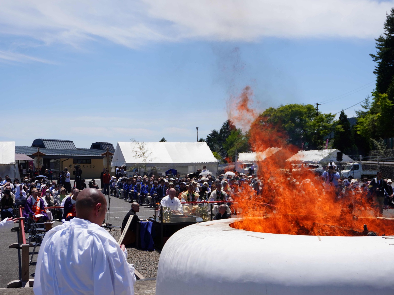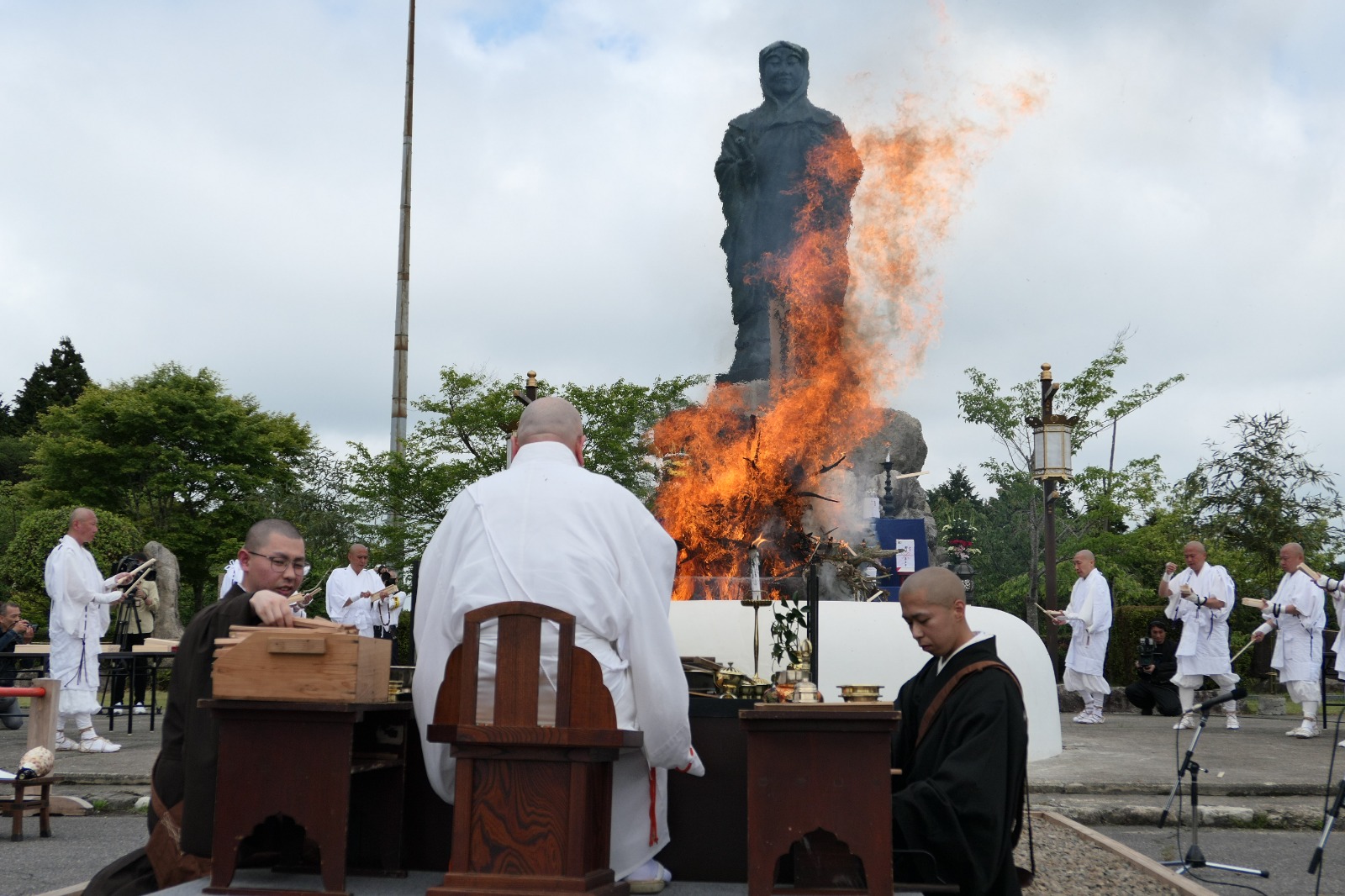 ★比叡山 西塔・峰道広場の伝教大師大尊像前にて、千日回峰行大行満大阿闍梨「光永圓道」を導師に仰ぎ、祈祷護摩供が執り行われる『比叡の大護摩』
