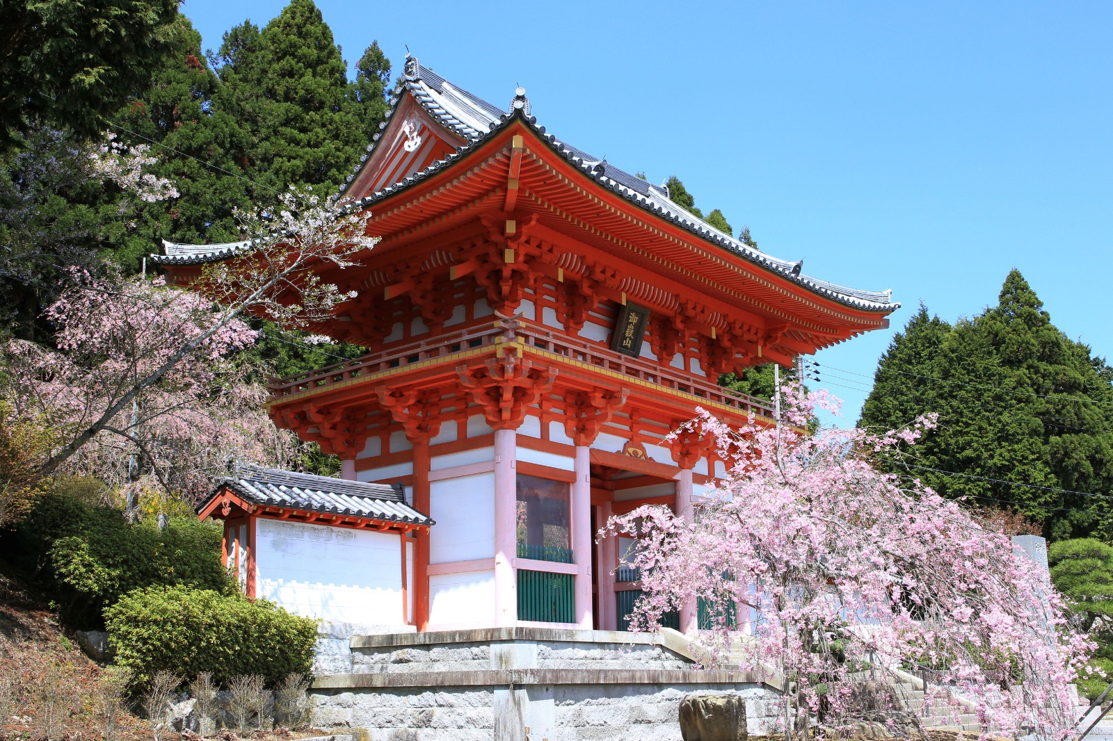 ★御嶽山の頂にある播州清水寺の本堂につづく山道沿いには、600本の染井吉野や八重桜が立ち並びます!