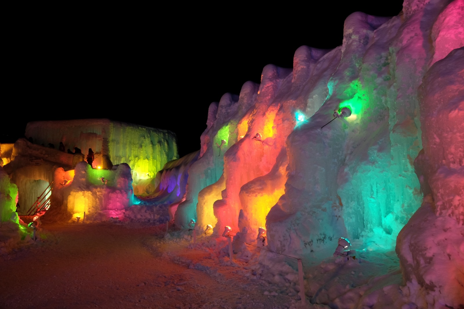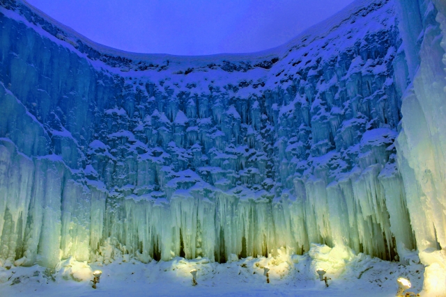 ★氷濤まつりでは、「支笏湖ブルー」と形容される青い氷像と夜はライトアップされた大小さまざまな氷像群をぜひご覧ください!