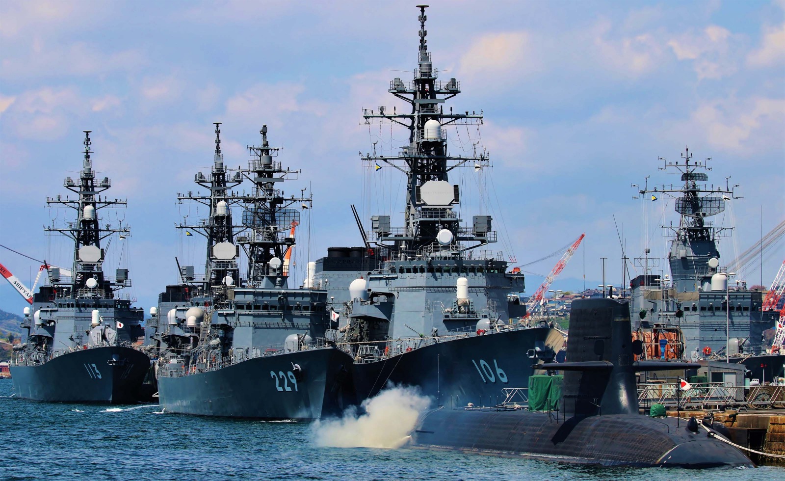 呉湾艦船めぐりで観られる艦船は実に多彩で、海上自衛隊の潜水艦や護衛艦など盛りだくさんです。大迫力の艦船を間近に眺めながらのクルージングは呉ならではの魅力です!元自衛官による解説を聞くながら迫力のクルージングをお楽しみください。