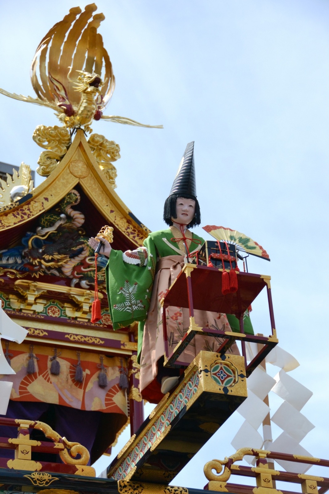 日本三大美祭のひとつで300年以上の歴史があり、山鉾・屋台行事がユネスコ無形文化遺産に登録されています。春の高山祭(山王祭)は仕掛けが施された戻し車や、巧みな人形の動きを披露するからくり奉納がみどころ。豪華絢爛な屋台が飛騨高山の街を華麗に彩ります。