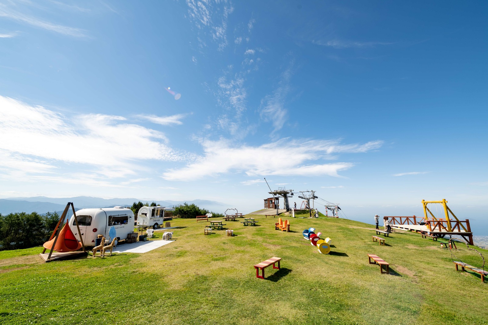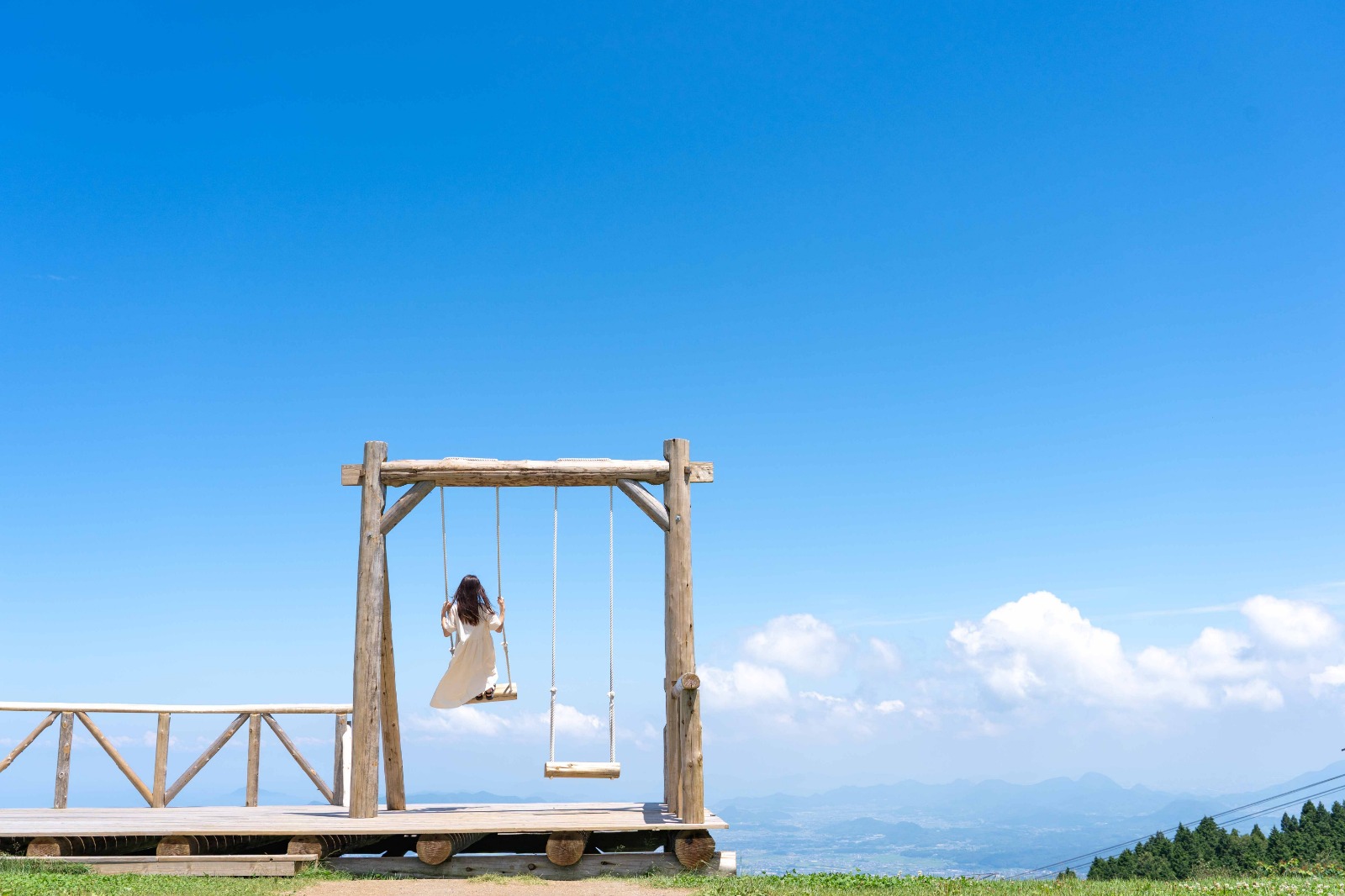 ★標高920mに位置する雲辺寺山頂公園は、ロープウェイで空中散歩を楽しんだ先に広がる絶景の公園です。讃岐平野や瀬戸内海を一望することができる絶景パノラマスポット!その景色を眼下に漕ぐ『天空のブランコ』はまるで空を飛んでいるようです。