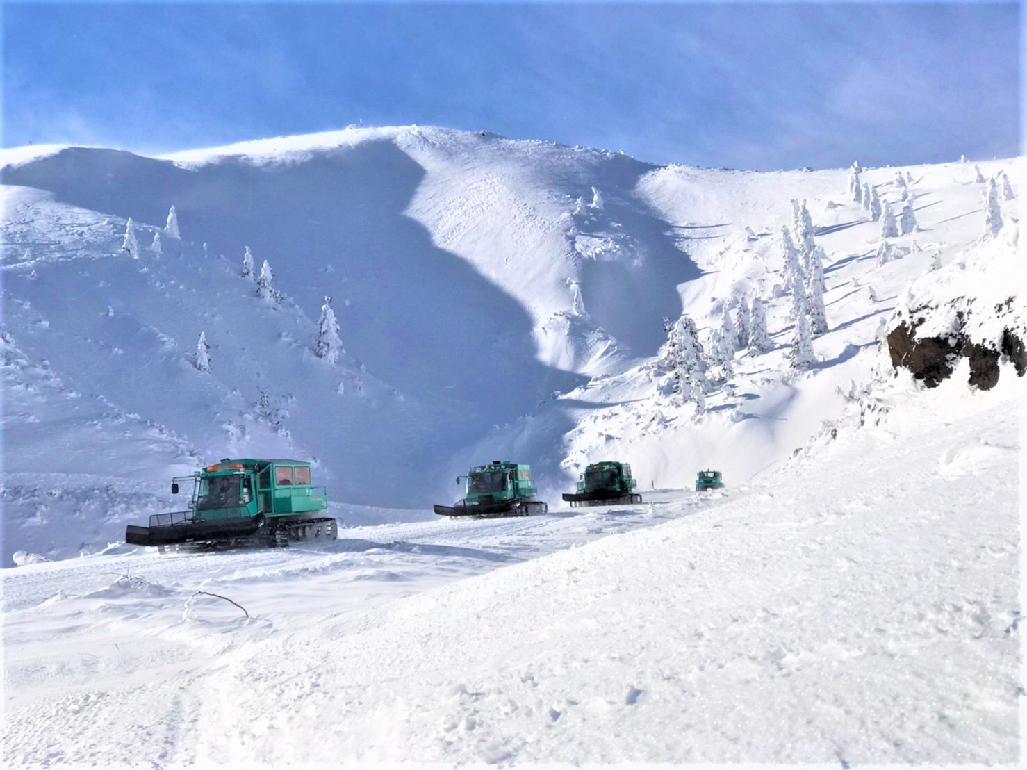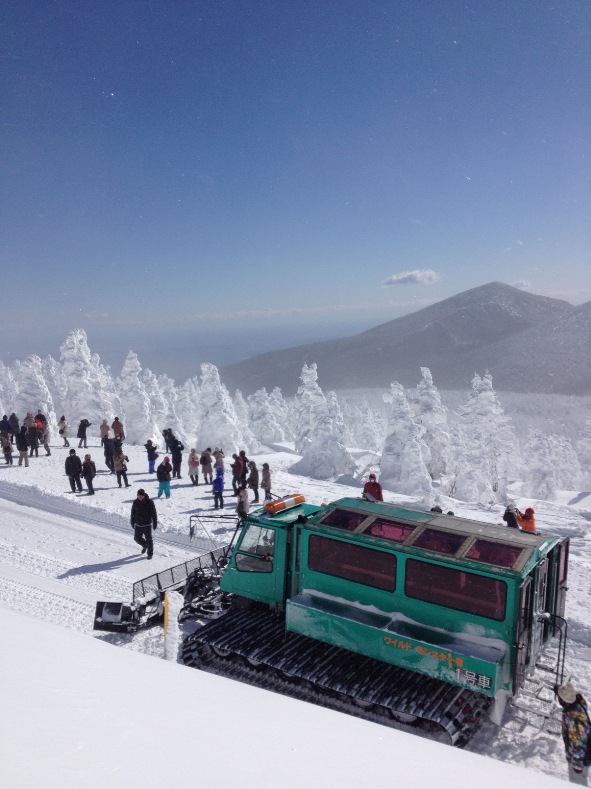 宮城蔵王ワイルドモンスター:暖房完備の雪上車、「ワイルドモンスター号」から樹氷見物!