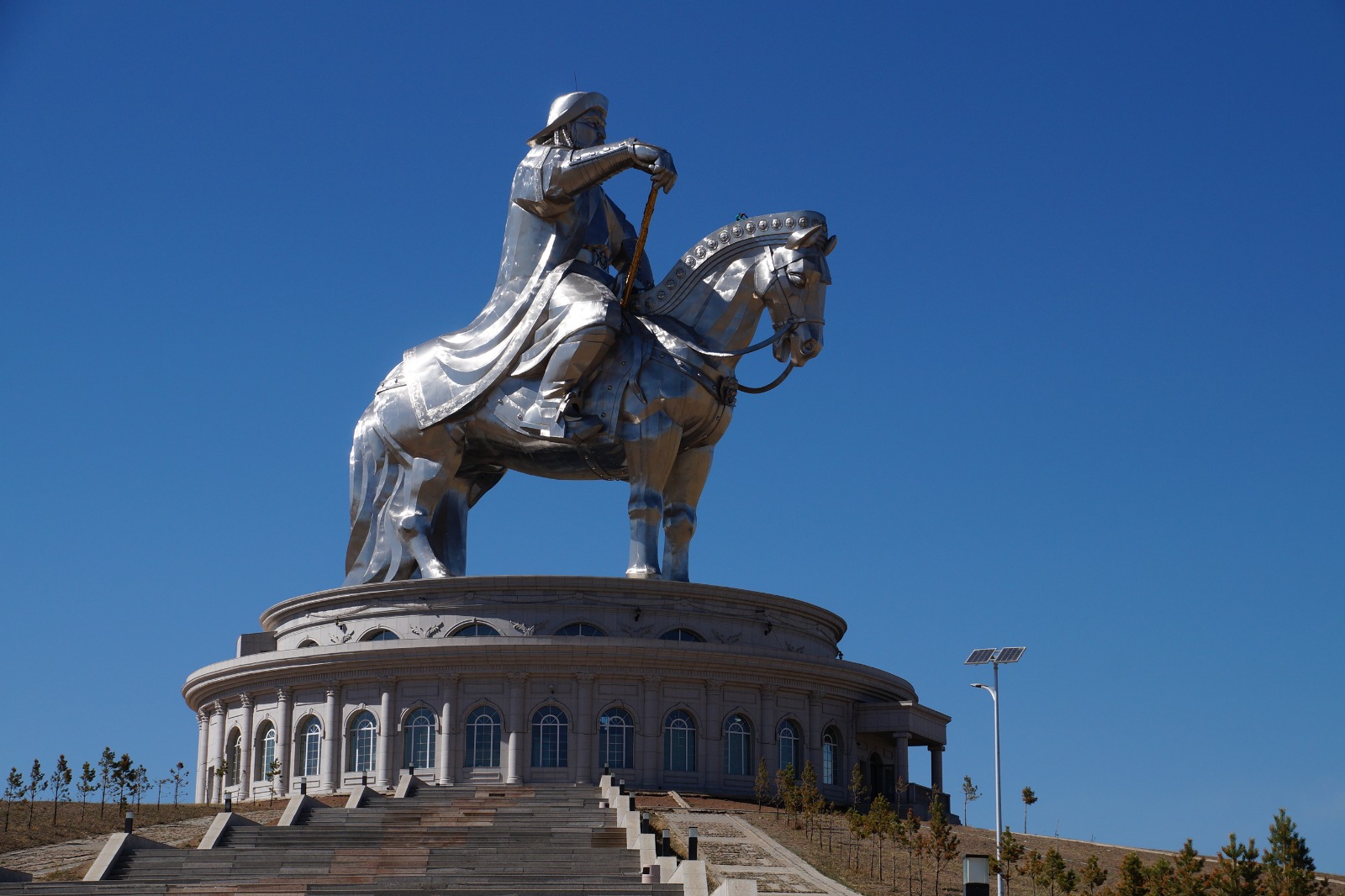 ホテル8:30==テレルジ・亀岩==フラワーハイキング(約1キロ・30分)……アリヤバル寺院==キャンプにてハンガリー料理ゴリヤシのご昼食●乗馬体験==チンギスハーン騎馬像==夕食==ホテル